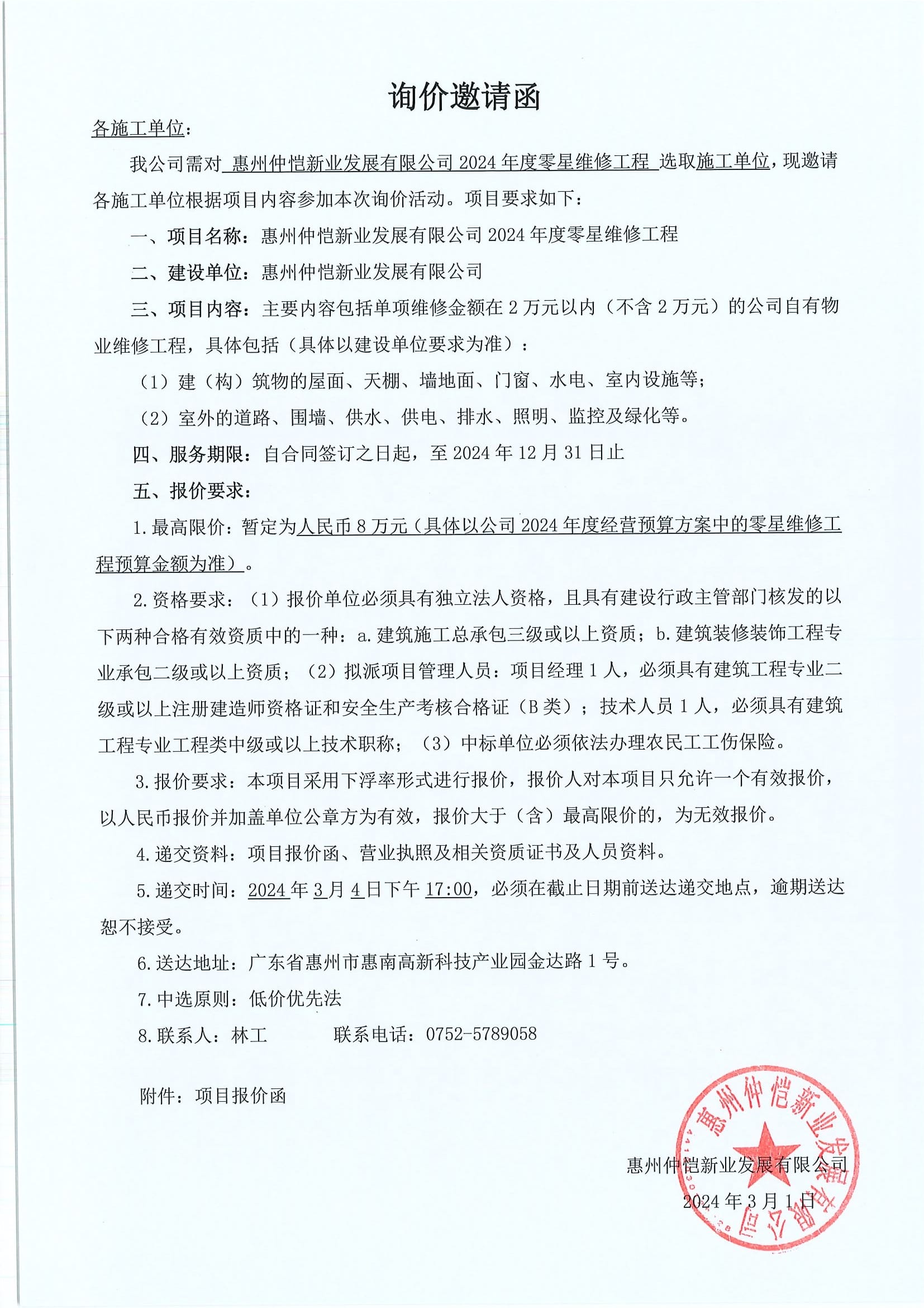 惠州仲愷新業(yè)發(fā)展有限公司2024年度零星維修工程
