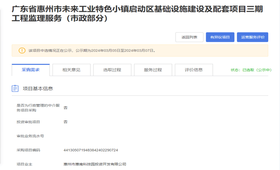 廣東省惠州市未來工業(yè)特色小鎮(zhèn)啟動區(qū)基礎(chǔ)設(shè)施建設(shè)及配套項目3期工程監(jiān)理服務(wù)(市政部分)