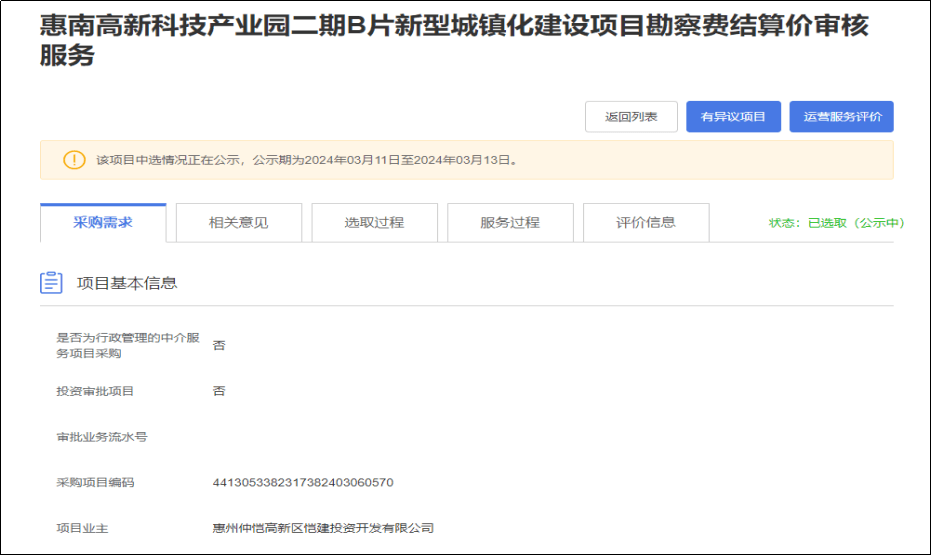 惠南高新科技產(chǎn)業(yè)園二期B片新型城鎮(zhèn)化建設項目勘察費結算價審核服務