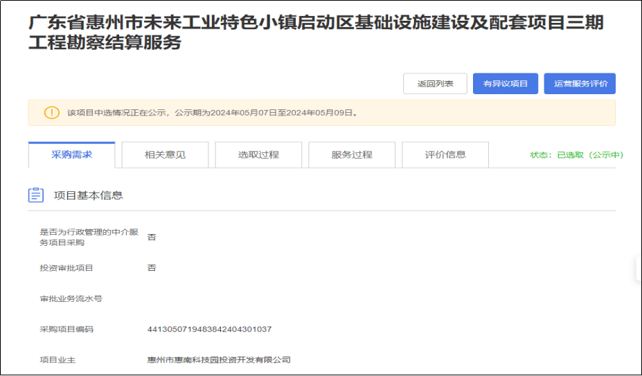 【公示】廣東省惠州市未來工業(yè)特色小鎮(zhèn)啟動(dòng)區(qū)基礎(chǔ)設(shè)施建設(shè)及配套項(xiàng)目三期工程勘察結(jié)算服務(wù)