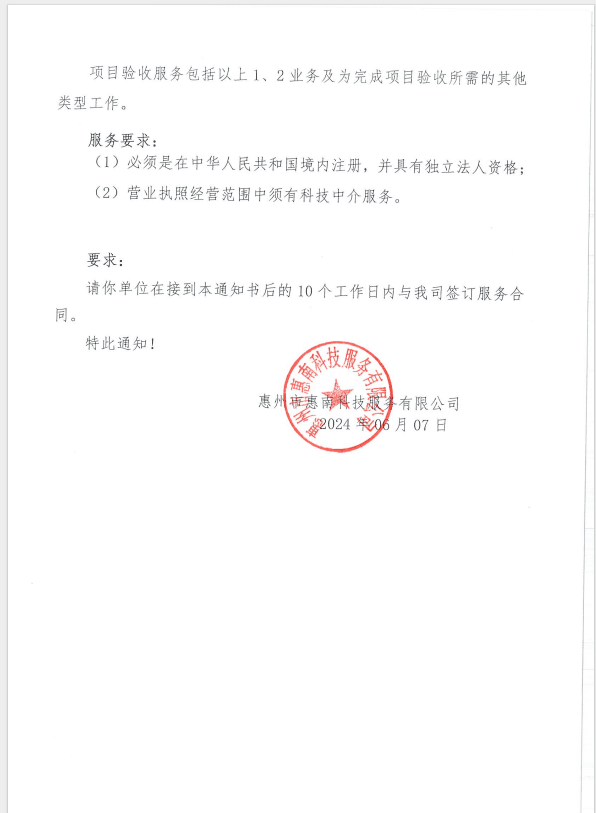 【中標通知】惠州市惠南智能終端產(chǎn)業(yè)全鏈條全要素專業(yè)孵化園項目驗收服務